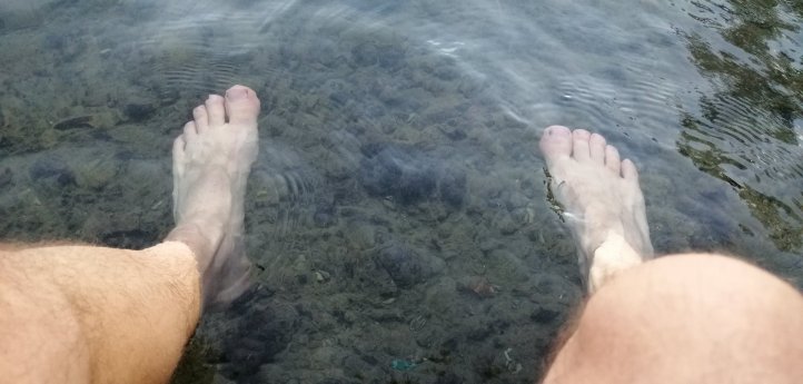 Ochesc o piatra in apa, ma descalt si ma duc sa stau pe ea. Imi bag picioarele in apa rece. Desfac si-o bere. Rai. Raiul din Italia.
